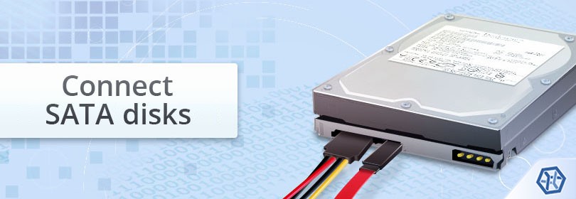 The SATA power cable in this case should go to the SATA port on the system’s PSU. If their number is smaller than the number of SATA drives, a single socket can be split into two or more connectors via an additional SATA power splitter.