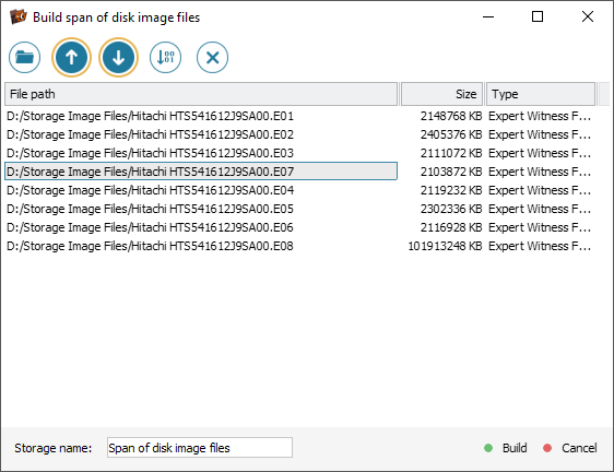 Una vez todos los segmentos estén abiertos, UFS Explorer los ordenará automáticamente de acuerdo con la convención de nombres reconocida. Con el botón "Ordenar archivos" es posible ordenar los segmentos agregados por separado según uno de los ajustes preestablecidos incorporados: