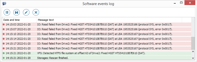 UFS Explorer registra ciertos eventos y errores que ocurren durante el trabajo con el software.