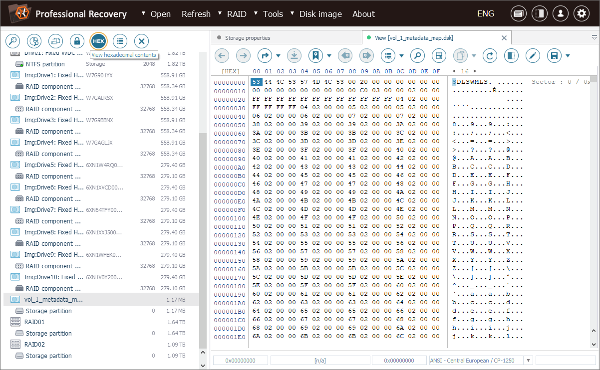 Sin embargo, en caso de que usted sea un especialista experimentado en la recuperación de datos y prefiera realizar dicho análisis por su cuenta, puede utilizar UFS Explorer Professional Recovery o UFS Explorer Technician para implementar los resultados de sus estudios de una manera aún más efectiva. Estas soluciones de software avanzadas permiten ensamblar volúmenes lógicos de redes SAN sobre la base de los archivos de "mapeo de datos externo" (external data mapping) en formato *.dsk que se crean mediante la conversión de los metadatos de una SAN particular.
