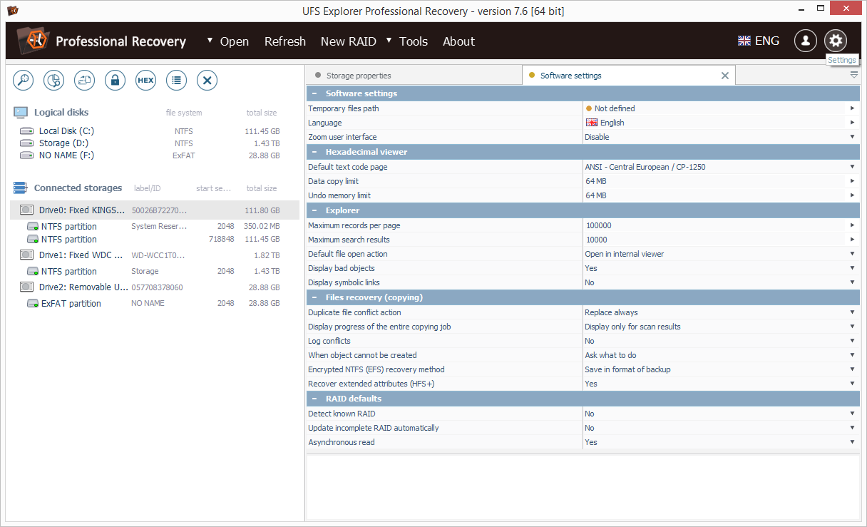 UFS Explorer Professional Recovery was developed to meet even the most challenging requirements of data recovery specialists. Featuring versatile data recovery techniques, the software will restore lost files from a vast variety of storage media – from portable devices to complex RAID-systems and virtual machines – as well as various file systems. At the same time, in response to the abundant market of operating systems, there are software releases for Windows, Linux and macOS. The program will work with both desktop and mobile, distributed and centralized, real and virtual environments. The utility is intended to produce remarkable recovery performance when dealing with data loss cases of any complexity – from simple file deletion to data recovery after complete destruction of a file system.