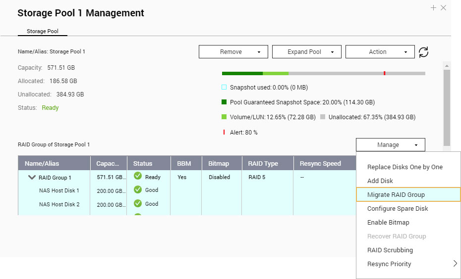 Pic. 1. Reconfiguration of RAID on QNAP NAS.