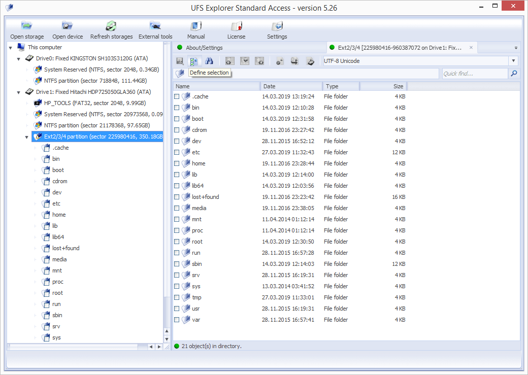Files stored in an undamaged incompatible partition can be copied with the help of UFS Explorer Standard Access by taking the following steps: