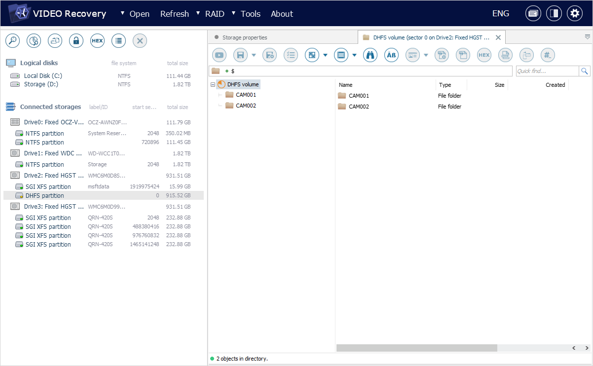 Власні файлові системи виробників відеопристроїв автоматично трансформуються програмою та відображаються у зручній та зрозумілій формі системи каталогів, незалежно від того, який вигляд вони мають безпосередньо на пристрої. Такі віртуально створені контейнери забезпечують зручну навігацію по записах, створених різними камерами та у різні дні: у разі кількох камер, виберіть потрібну за її номером, що вказаний в назві "батьківської" папки, а потім перейдіть до потрібної дати, вибравши відповідну "дочірню" папку.